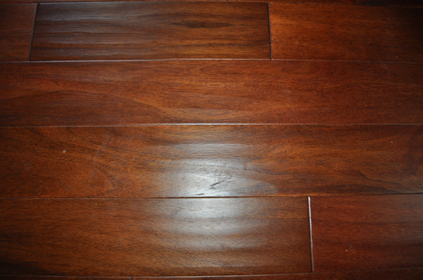 - Detail of the new Acacia Cabernet Hand scraped hard wood floor. It is engineered and floating, to go over the concrete slab floor.