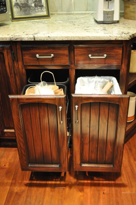 - These cabinets were moved from one side of the kitchen to the other and converted to trash and recycling bins. Photo: J Scott McElroy