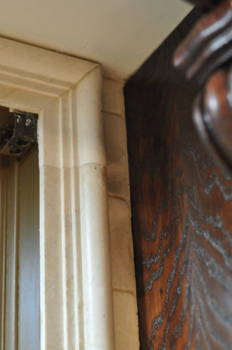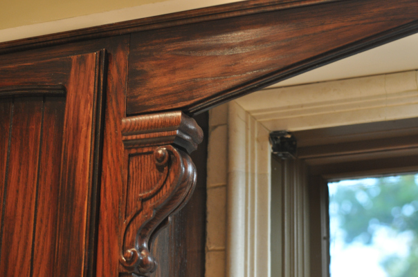 - Detail of an oak corbel. These came unfinished and we stained to match.