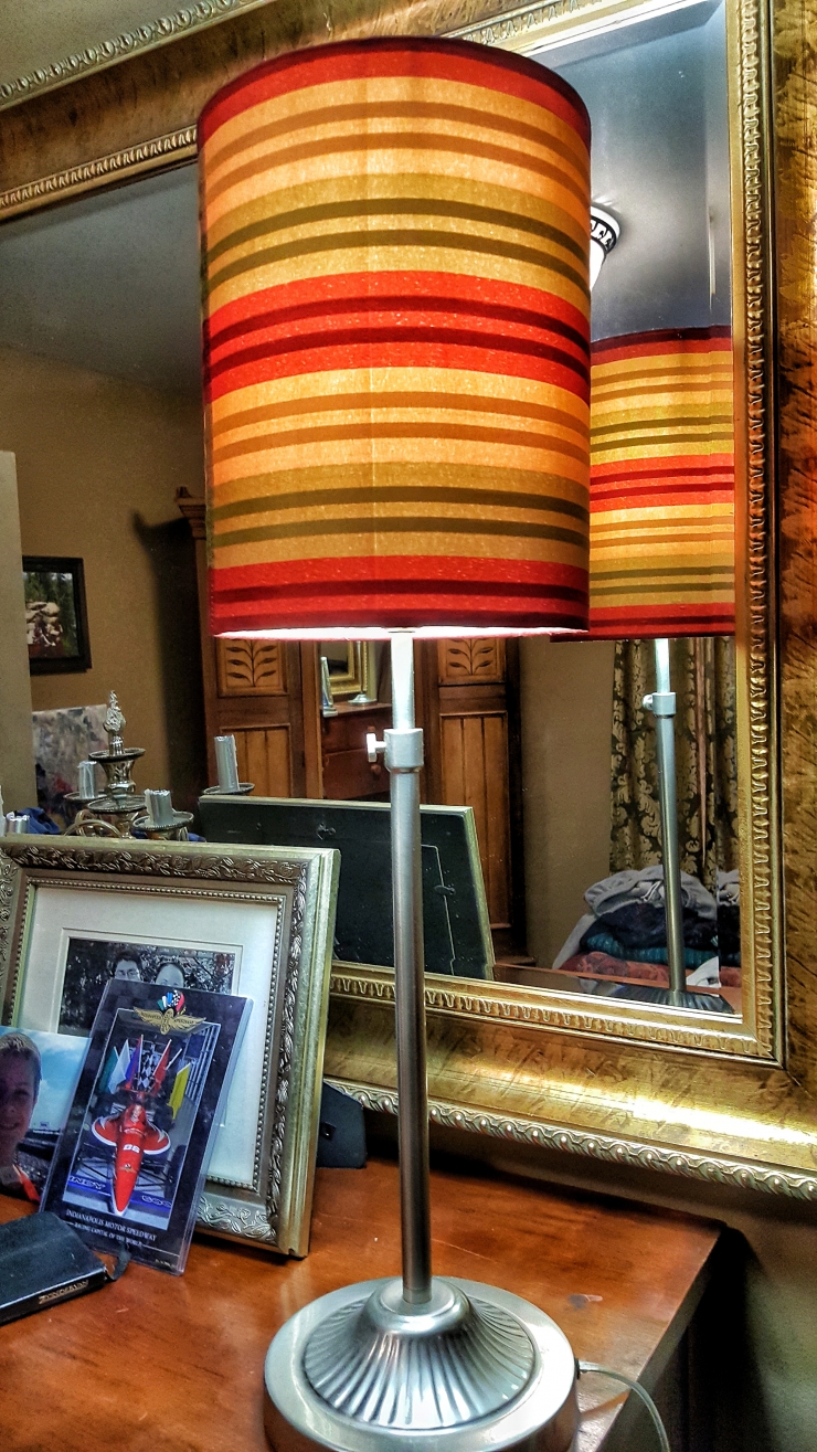 I never get tired of the way this lamp stand catches the light with its polished metal curves.